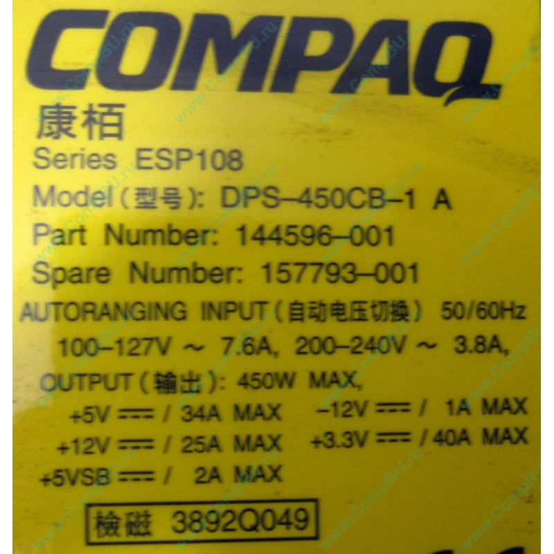 Серверный блок питания 450W HP Compaq ESP108 DPS-450CB-1 (p/n 144596-001) для серверов HP ML530, ML530G1, ML570, ML570G1.